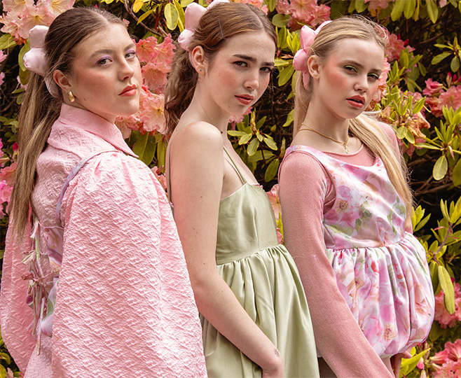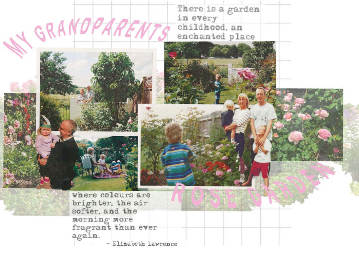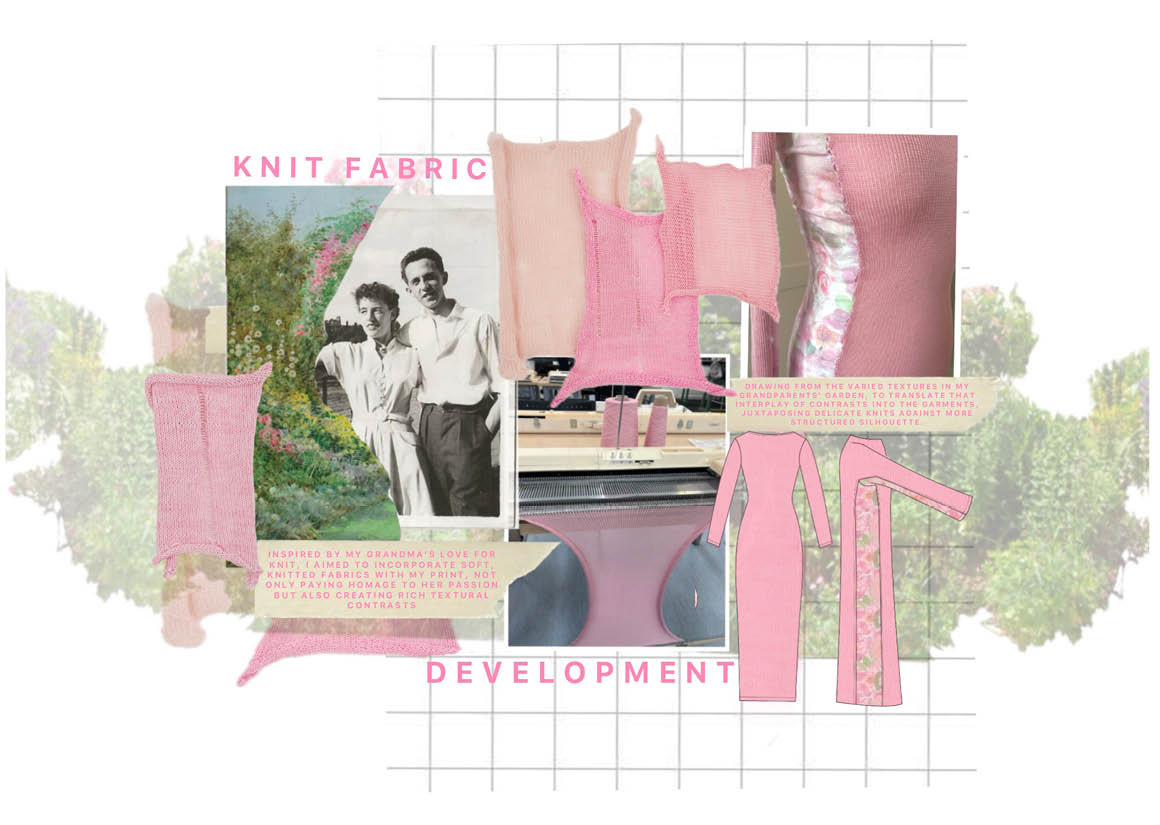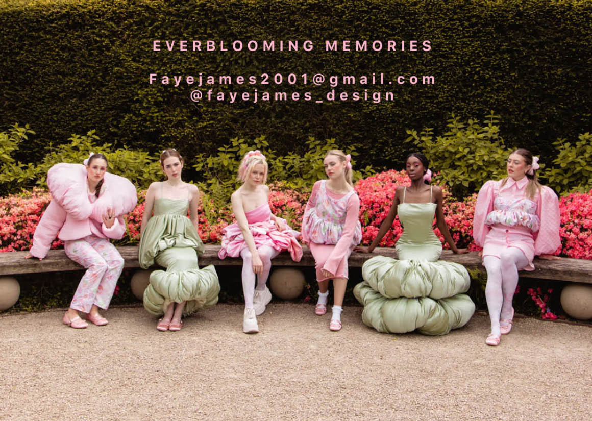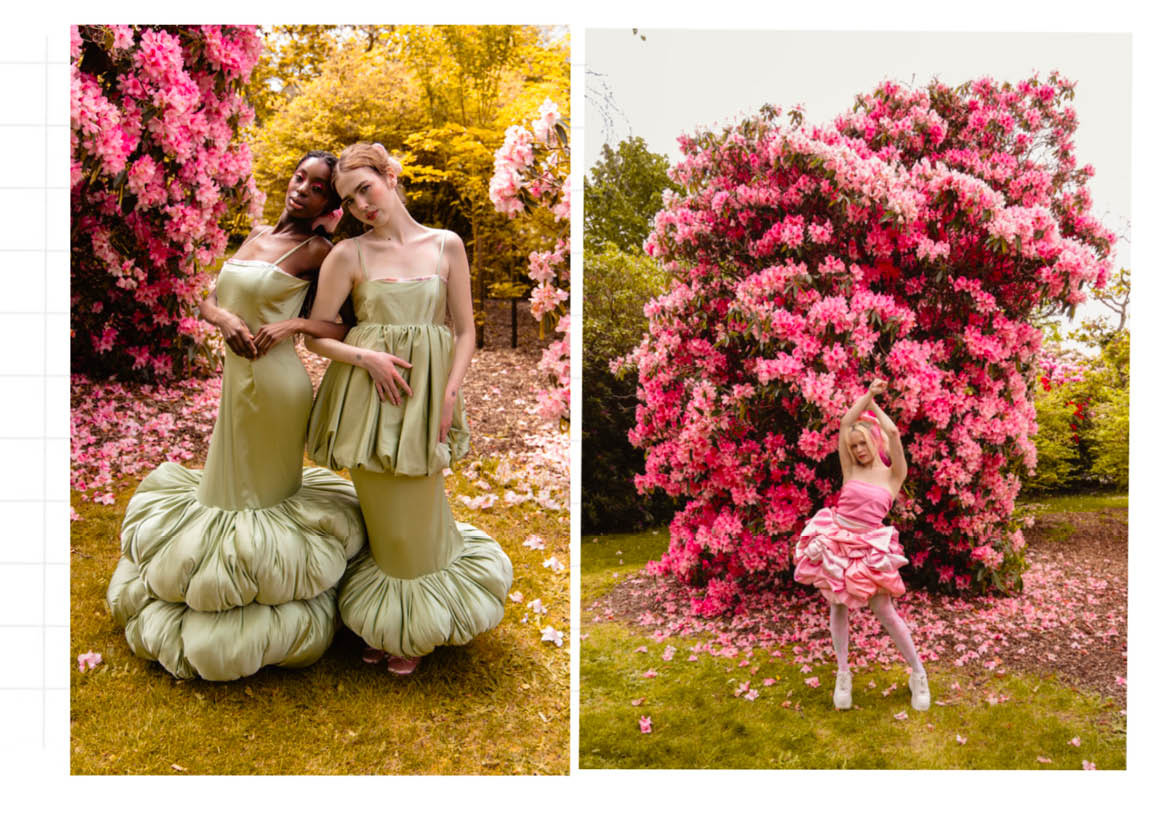 I was captured by the colours and the beauty of a single rose; seeing the bud form and develop to reveal the delicate petals. My grandad would take photographs of every rose in the garden every year. These rose shapes became the main inspiration for the silhouette within the collection. Trying to echo the rose petals and layers. My aim is for the collection to be a gateway, allowing them to step into the garden and to be surrounded by its beauty.