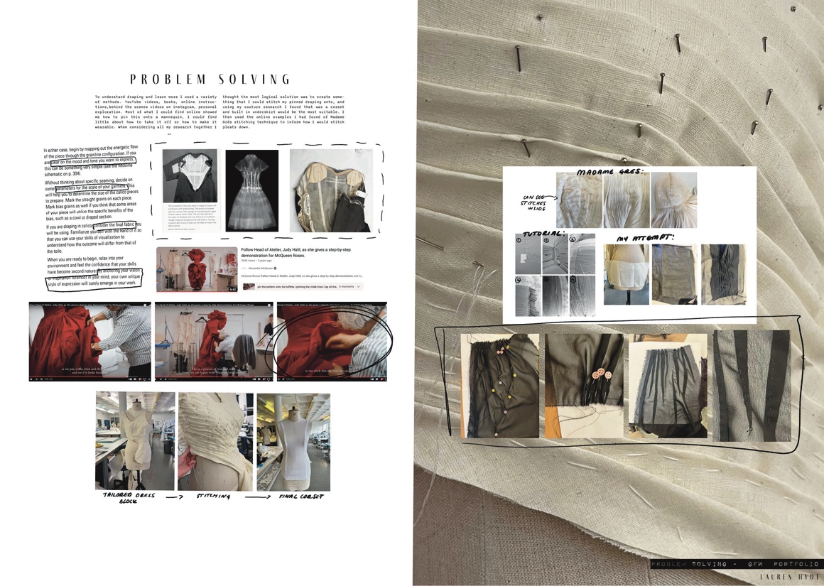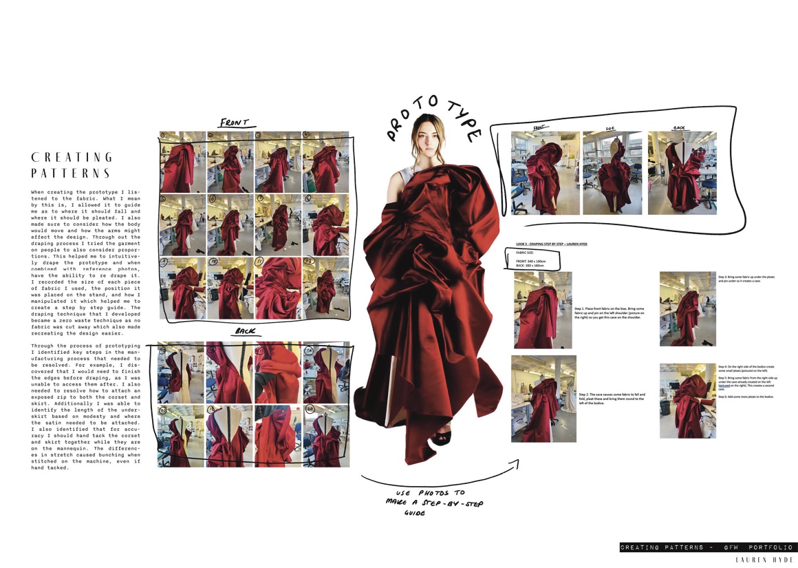 I am a womenswear designer and pattern cutter who specialises in moulage and tailoring. Throughout my 6 years of fashion education, I have developed a sophisticated and feminine design style that is considered and focused. I design through hands on exploration with materials and techniques underpinned by fashion theory and research into other disciplines.
