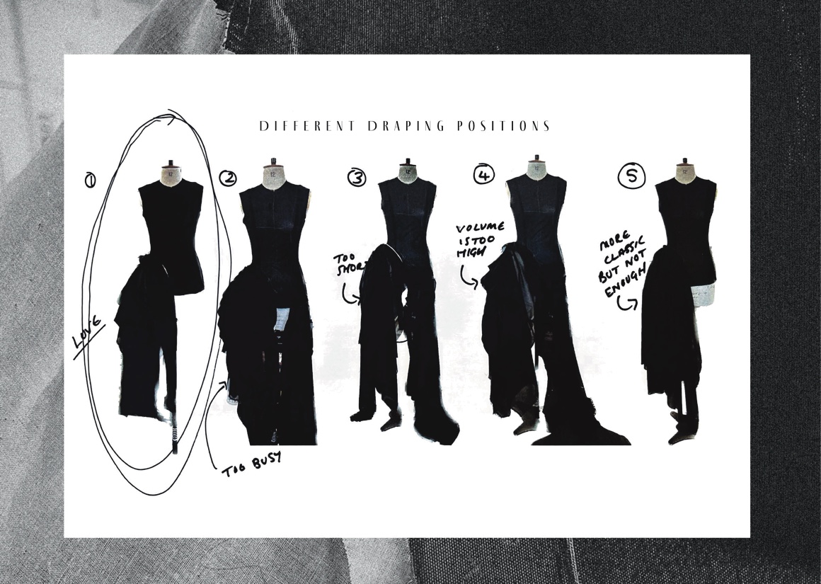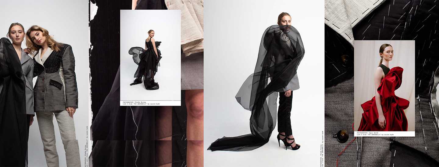 To me, fashion is a driving force in conveying and changing ideals of the current and future epoch. The notion that fashion is an art form, which communicates meaningful and intellectual ideas, underpins my design philosophy. As a designer, I strive to gain knowledge about the traditional techniques of tailoring and draping, finding peace and enjoyment in the flow of making. In my graduate year I was able to hone and explore my skills in draping and tailoring to a high level which will continue to inform my future designs.